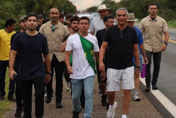 Carlos Bolsonaro e políticos se unem a Nikolas Ferreira em marcha rumo a Brasília em protesto contra STF