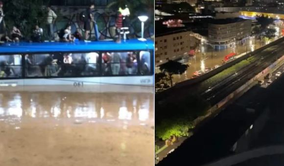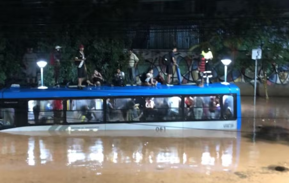 A intensidade da enxurrada provocou situações de emergência no transporte público. Na Avenida Garibaldi Campinhos, no Bairro Vitorino Braga, passageiros ficaram ilhados no teto de um ônibus. Um cenário similar ocorreu na Rua Diva Garcia, no mesmo bairro, onde outro coletivo ficou preso após o transbordamento do Córrego do Yung. Felizmente, não houve registro de vítimas.