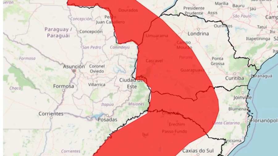 O avanço desse sistema começará na madrugada de domingo, com a entrada da frente fria pelo Rio Grande do Sul. Ao longo da manhã e da tarde, os temporais avançam e se espalham rapidamente por Santa Catarina, Paraná e Mato Grosso do Sul. A partir da noite de domingo e ao longo da segunda-feira (17), a instabilidade deve alcançar o Sudeste e o Centro-Oeste, afetando também estados como Goiás, São Paulo e Rio de Janeiro, com potencial para chuvas fortes e rajadas de vento significativas nessas regiões.