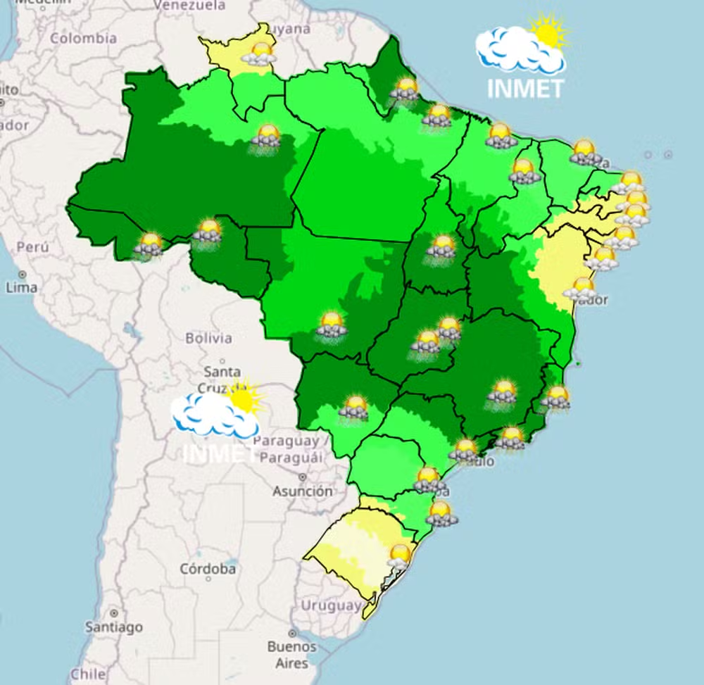 Já na Região Norte, o padrão típico de verão continua, com Manaus registrando pancadas de chuva intercaladas com períodos de sol. A tendência para a capital amazonense é de intensificação das trovoadas entre quinta e sexta-feira, mantendo a característica de umidade extrema e calor constante.