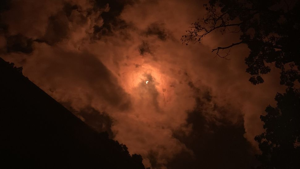 Whitney Husz capturou esta cena de outro mundo usando um filtro solar sobre as lentes de um iPhone antigo. Husz testemunhou o eclipse a 2.800 pés nas Montanhas Apalaches.