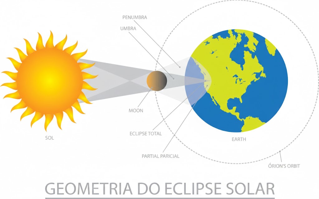 A principal diferença entre este fenômeno e um eclipse solar total reside na distância orbital da Lua. No eclipse anular, o diâmetro aparente do satélite é menor do que o do Sol. Durante o ápice do alinhamento, especialistas explicam que são projetadas duas zonas de sombra: a “umbra”, que é a região central e mais escura onde a luz é totalmente bloqueada, e a “penumbra”, uma área ao redor onde a luz solar é interceptada apenas parcialmente.