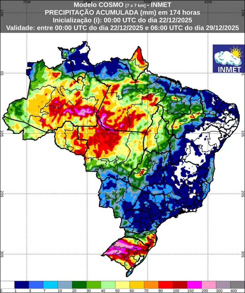 No Sudeste e Centro-Oeste, as tardes de domingo devem ser marcadas por pancadas irregulares, mas potentes, com potencial para alagamentos e transtornos urbanos. Já no Norte e em partes do Nordeste, o risco de temporais se acentua, com chuvas acompanhadas de descargas elétricas e rajadas de vento em estados como Amazonas, Pará e Piauí.