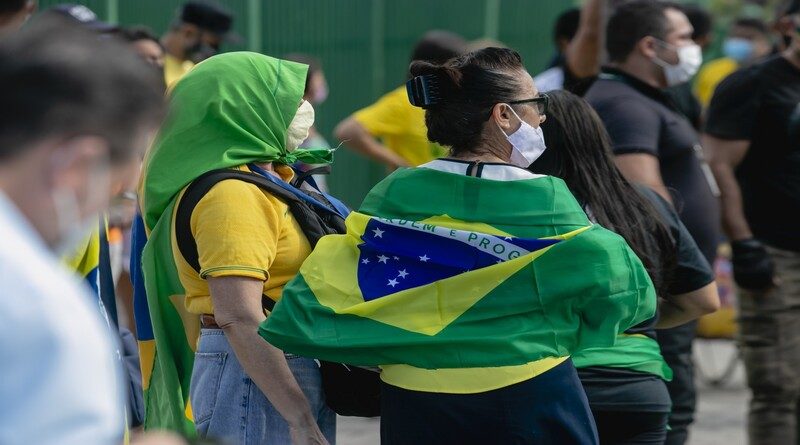 Ler maisApós o decreto estadual de 11 de março, que determinou isolamento mais rígido, manifestantes vestidos com as cores da bandeira do