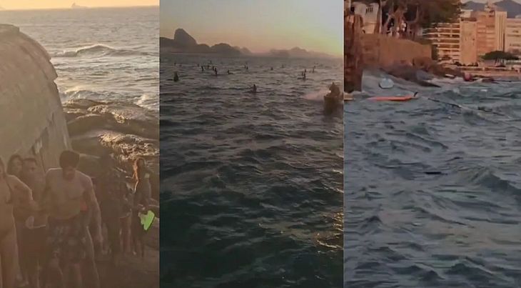 Ventos de 70 km/h e mar agitado arrastam centenas de banhistas contra pedras no Rio de Janeiro; vídeo